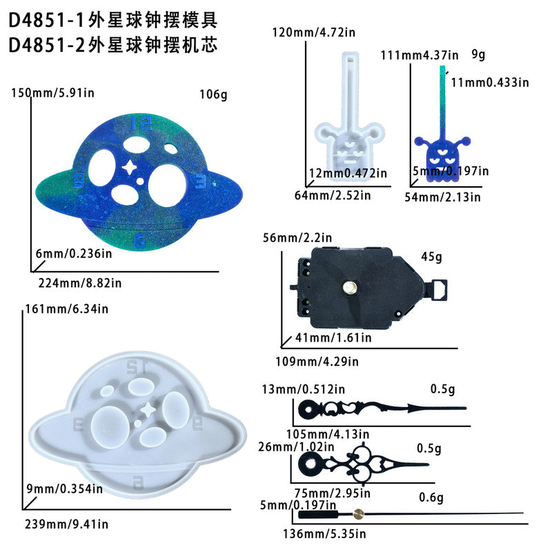 D4851- Outer Planet Pendulum Mold+Clock Movement Set